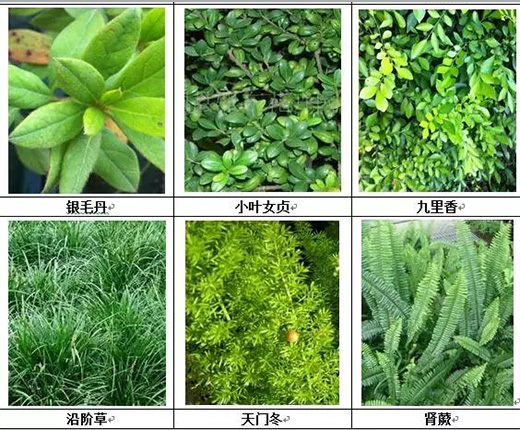 (2)陰生環境適用植物:光照條件較差的地帶,適宜選擇喜陰、中性和耐陰的植物種類。