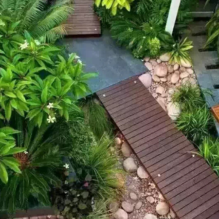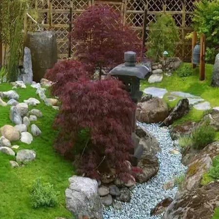 植物的營造在意境上表達出溪水的景觀。在人造溪的時候,先是素土夯實,再碎石