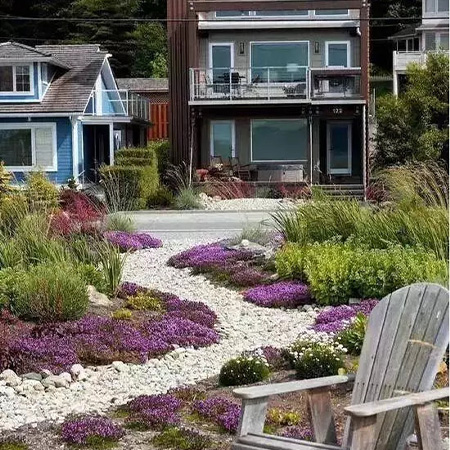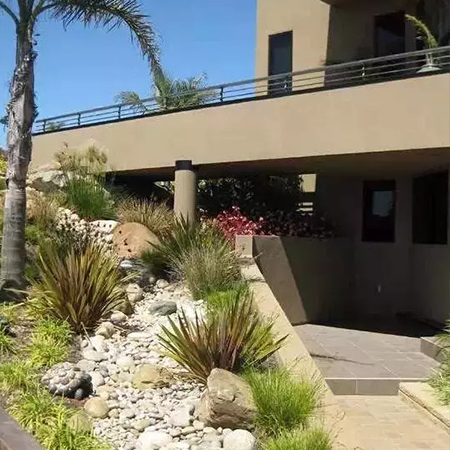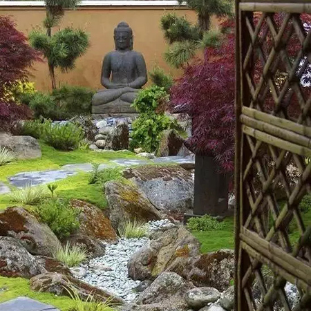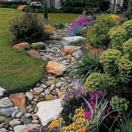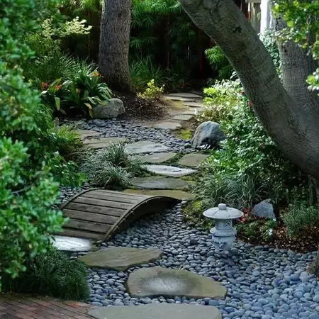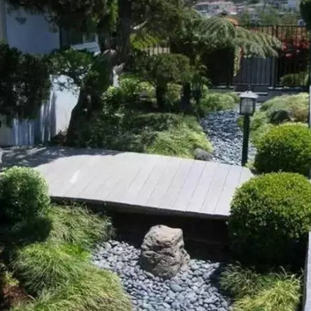 本叫枯山水,有禪意,節水,低維護,方便介入。有時,旱溪也可以做河底,甚至