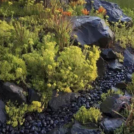 墊層,再混凝土,最后把天然石頭放在之上。這樣一來,即使在沒有水的時候,露